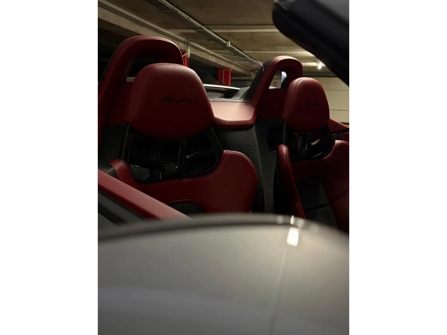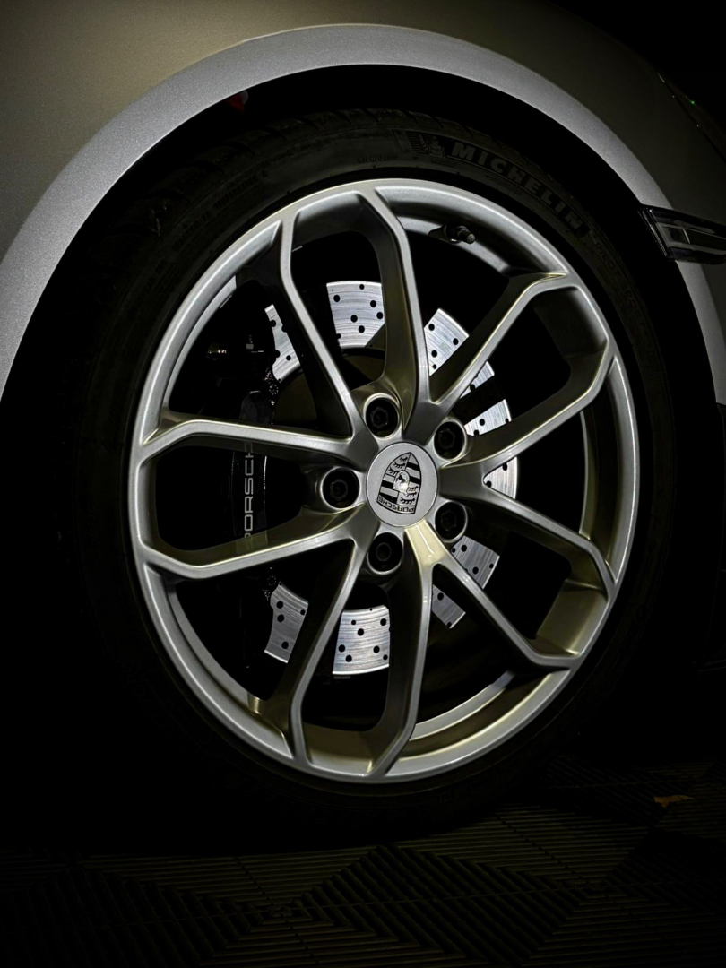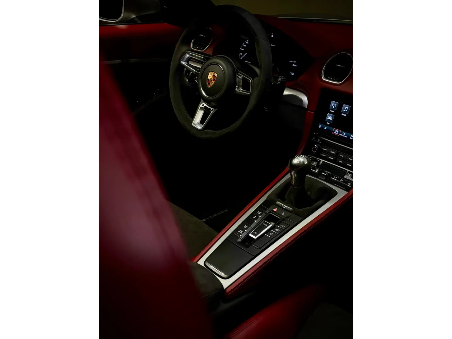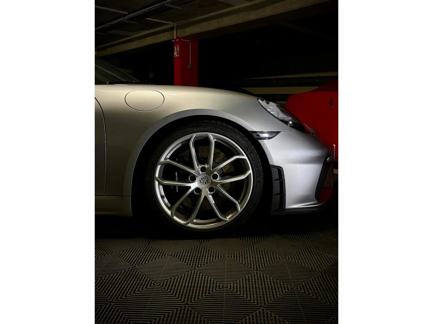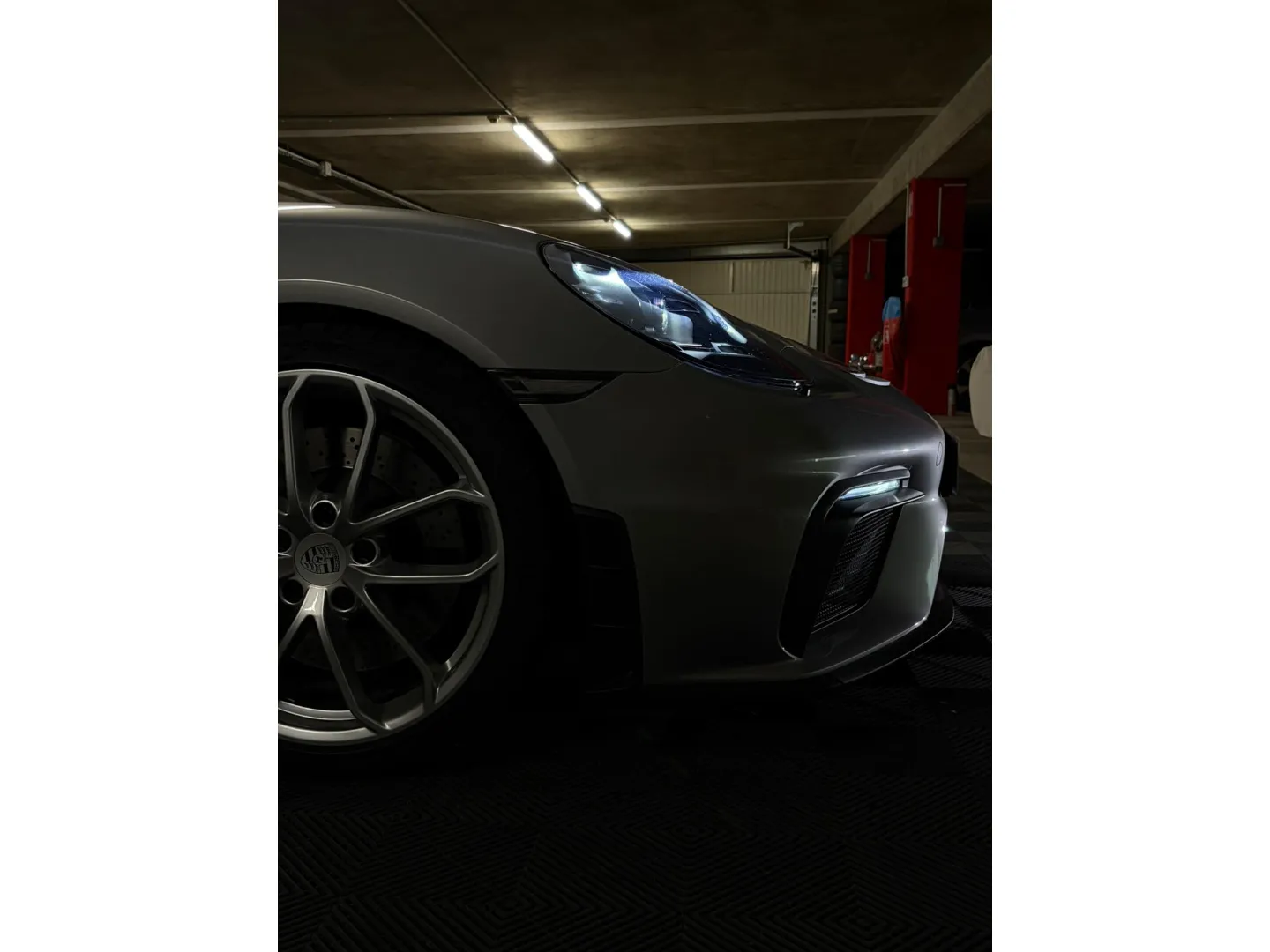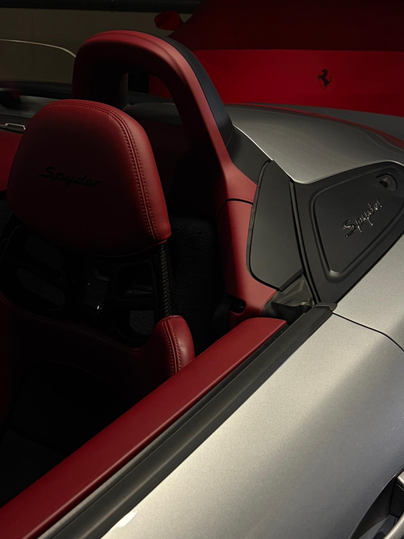 Cette 718 Spyder, livrée en Argent GT métallisé avec intérieur cuir Rouge / Alcantara noir et capote rouge, incarne la définition moderne du roadster Porsche puriste.