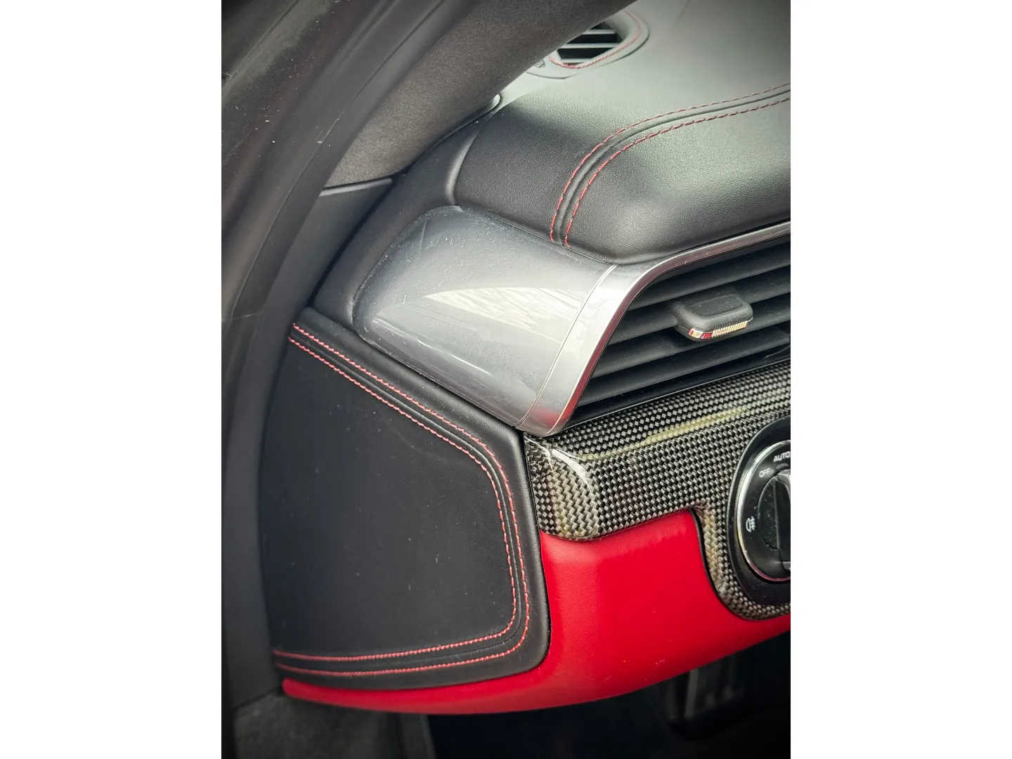 Son intérieur entièrement gainé de cuir bicolore avec des finitions en carbone et Alcantara® apporte une atmosphère luxueuse et dynamique.